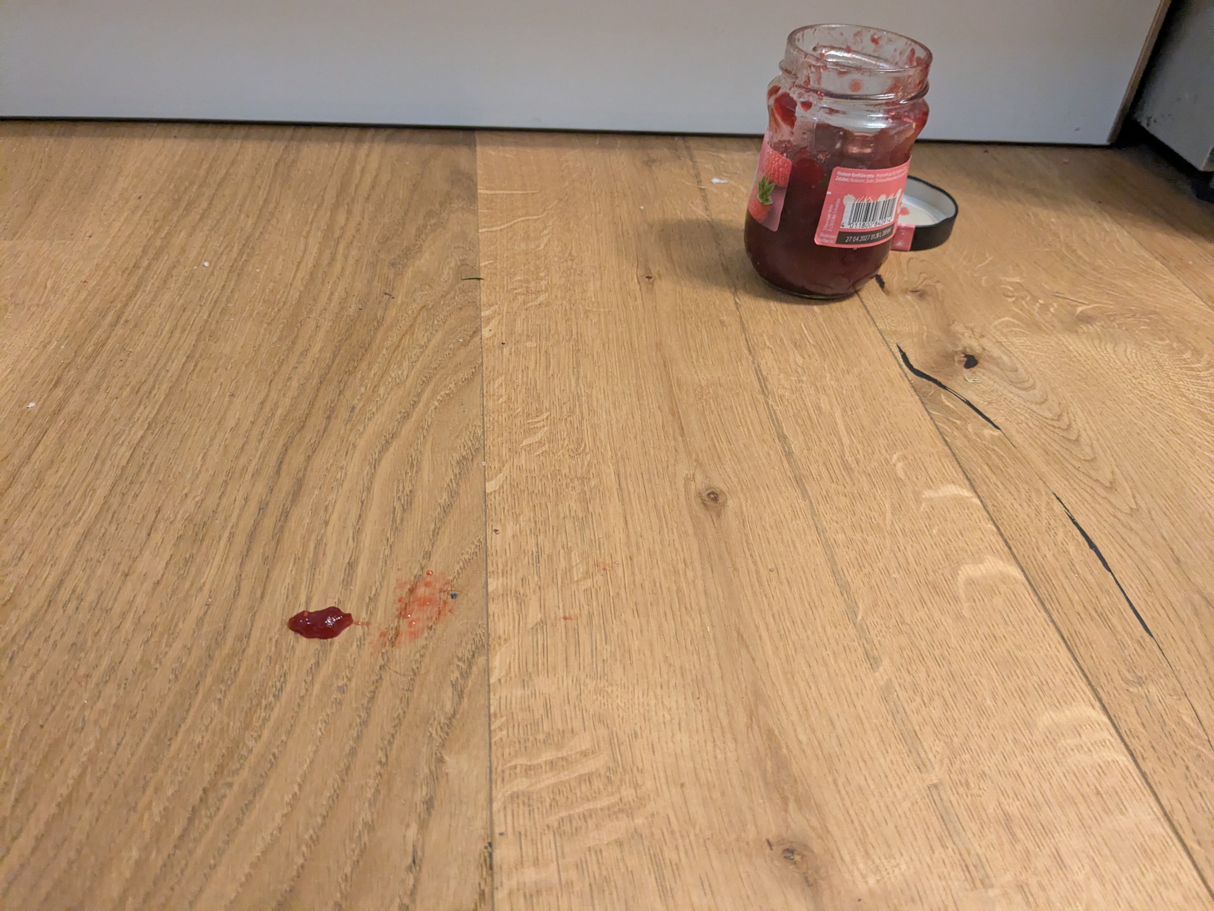 Da hat sich Jonte wohl ein Marmeladenbrot geschmiert, das Glas vergessen und Kelda ist ausgebüchst um zu naschen und jetzt selbst vollgeschmiert mit dem klebrigen Zeug.